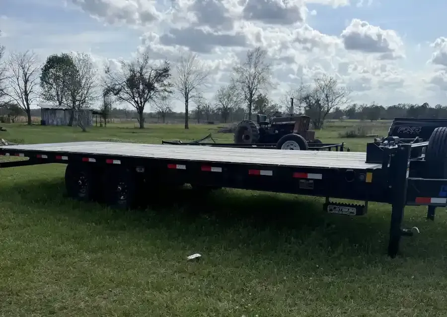 8×25 gooseneck trailer with (2) 10,000 lb axles for tractors, heavy equipment, and large trucks. Features mega ramps and 2 5/16” gooseneck coupler for easy loading and towing.
